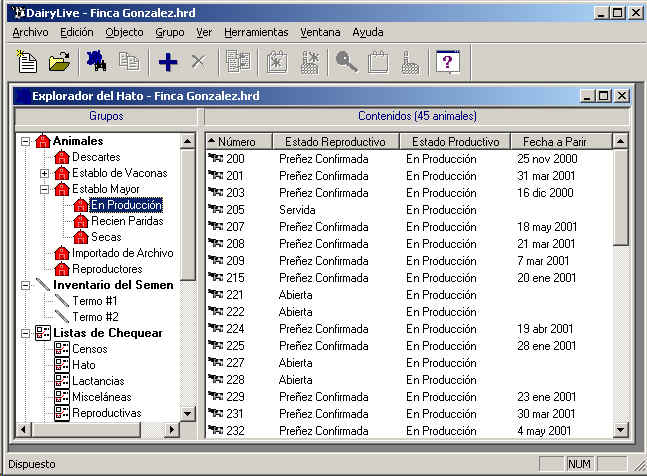 Abra la categoria Animales, luego abra el grupo Establo Mayor. Ahora seleccione el Grupo En Produccion. Vera algo asi :