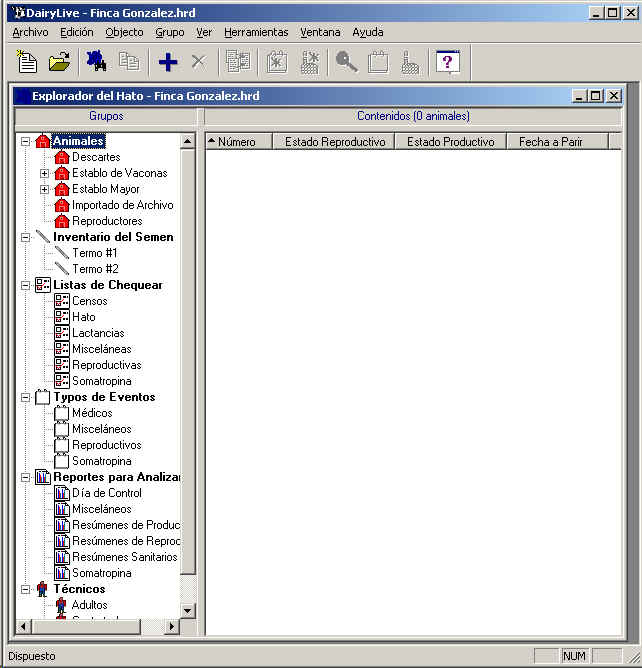 Vea Estableciendo su Hato para mayor informacion sobre como establecer la base de datos de su propio hato por primera vez.