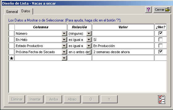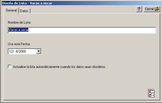 Vaya al lado izquierdo del Explorador del Hato y expanda la categoria de Listados. Seleccione uno de los grupos y luego en el lado derecho seleccione uno de los listados que aparecen. Vaya al menu Objeto->Abrir. Se le aparecera la ventada Listados :