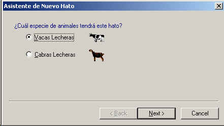 Seleccione entre Vacas Lecheras o Cabras Lechera y presione el boton Siguiente :
