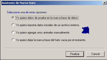 Para crear la base de datos demostrativa, seleccione del menu Archivo->Nuevo Hato. Se le presentara una pantalla como la que se muestra a continuacion :